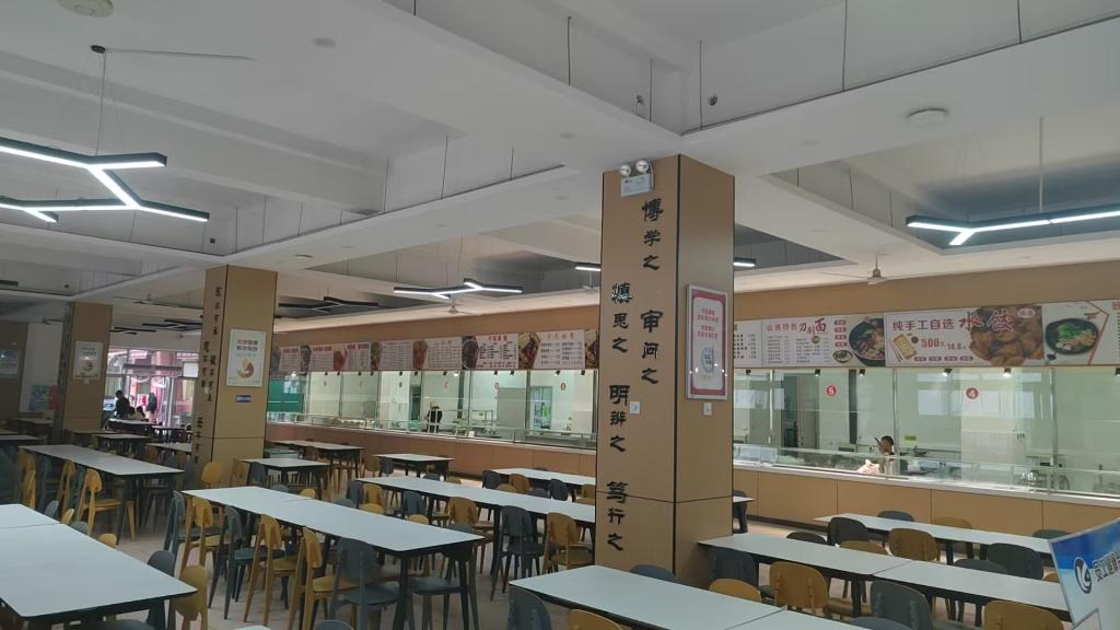 二、食堂安全全面升级 餐饮服务中心对后厨、餐厅、餐具进行彻底清洗和消毒,全面检修燃气、电气及消防设施安全;严控食材来源,优化菜单结构,科学配餐,为师生提供科学、卫生、安全的餐饮服务。