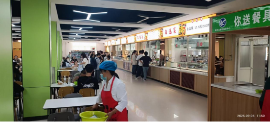 餐饮服务中心严格把关食品安全,丰富菜品供应,满足各地新生口味。明厨亮灶、消毒餐具、热情服务,让新生和家长吃得放心、舒心。